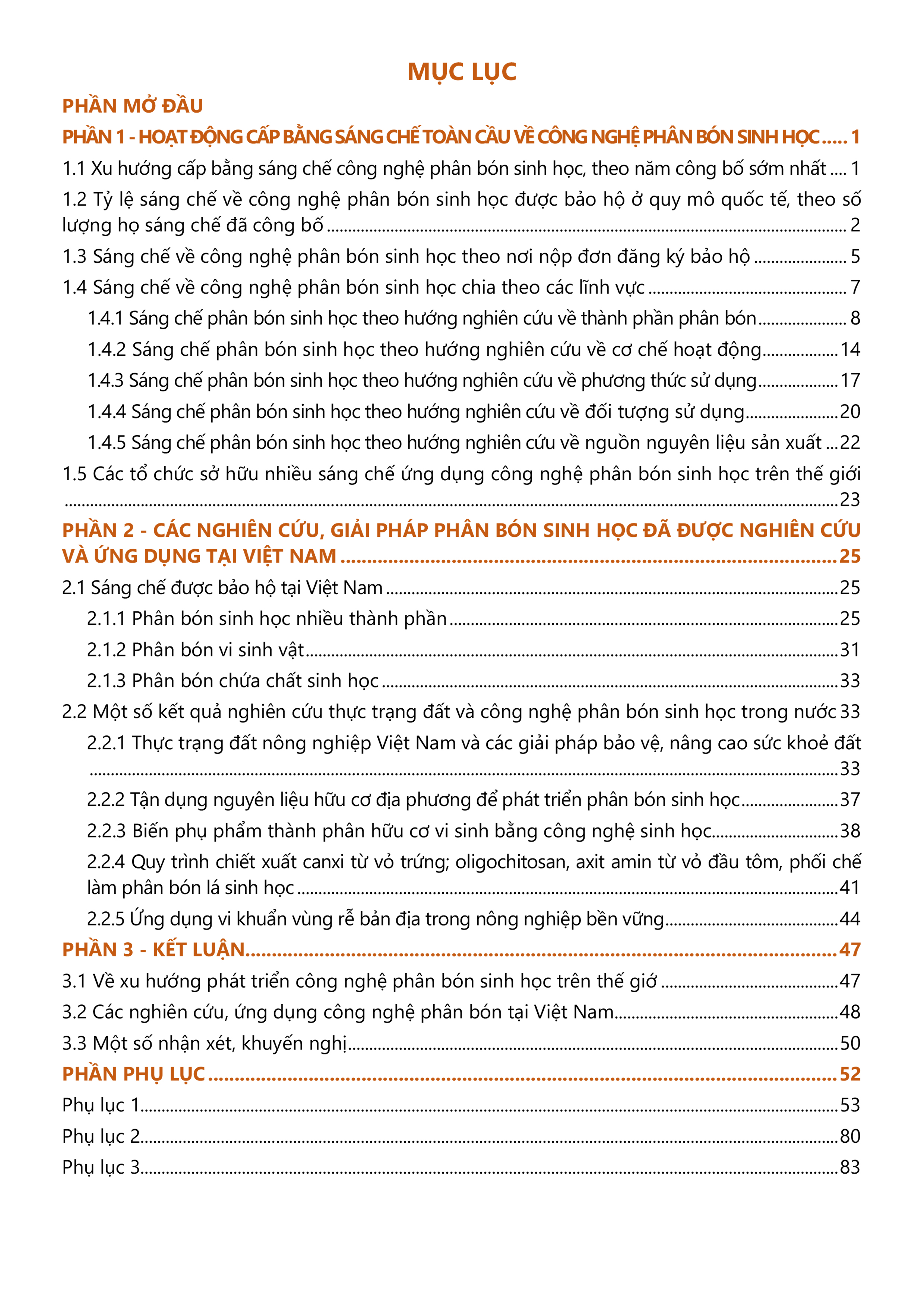 - Phần 3: Kết luận sẽ khái quát lại xu hướng ứng dụng công nghệ phân bón sinh học trên thế giới và tình hình nghiên cứu, ứng dụng công nghệ này tại Việt Nam.