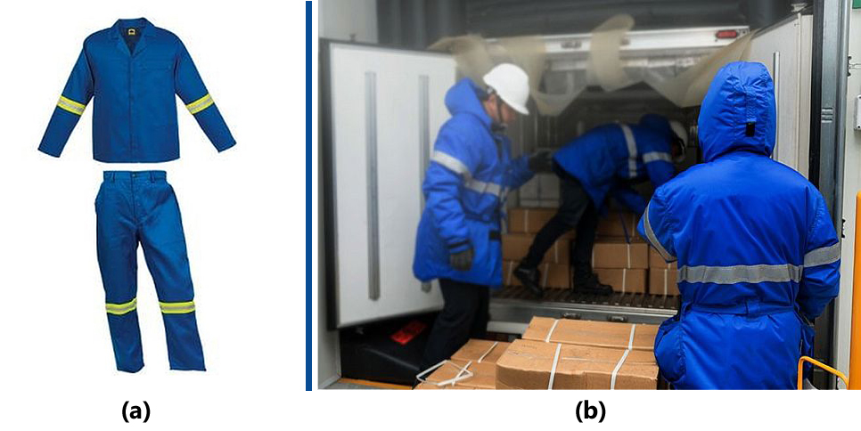Quần áo bảo hộ cho người lao động: (a) Làm việc ngoài trời; (b) Làm việc trong môi trường nhiệt độ thấp (Nguồn: Kết quả nghiên cứu)