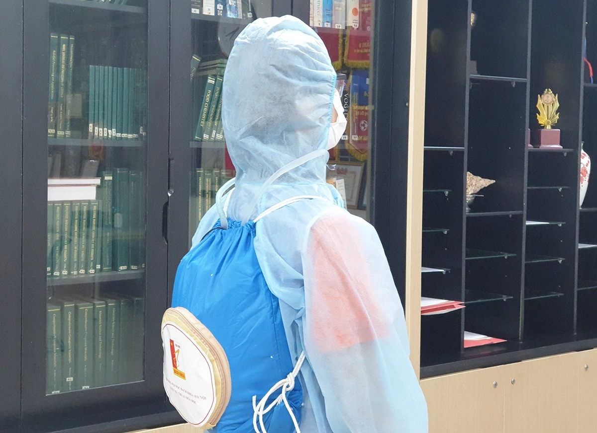 Bên cạnh các đề tài khoa học, sinh viên Đại học Bách khoa Hà Nội cũng có những ý tưởng sáng tạo nhằm hỗ trợ cho lực lượng y tế tuyến đầu. Tiêu biểu như giải pháp hữu ích “Áo bảo hộ có bộ phận làm mát tuần hoàn bằng dung dịch” (Số bằng VN2-0003489-000, công bố ngày 18/12/2023). Áo bảo hộ bao gồm 4 lớp trong đó có một hệ thống ống mềm dẫn nước làm mát. Nước được bơm từ bình chứa có đá đặt trong balo đeo sau lưng, sau khi làm mát sẽ tuần hoàn qua các ống trong áo rồi quay trở lại bình, tạo chu trình khép kín. Người dùng có thể điều chỉnh nhiệt độ làm mát bằng bơm. Thử nghiệm cho thấy chỉ cần khoảng 300g đá và 300-400 ml nước, hệ thống có thể duy trì mức nhiệt 26-27°C trong 2-4 giờ, phù hợp với khả năng thích nghi của cơ thể và tránh sốc nhiệt.