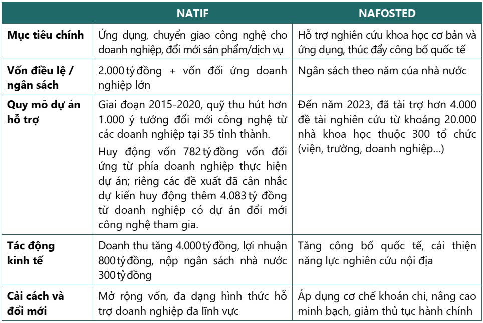 Nhà nước cũng thành lập các quỹ phát triển KH&CN để hỗ trợ các cá nhân, doanh nghiệp tiến hành nghiên cứu, ứng dụng KH&CN vào thực tế. Nổi bật là Quỹ Đổi mới Công nghệ Quốc gia (NATIF) cung cấp vốn ưu đãi cho các dự án R&D và đổi mới sáng tạo, tác động trực tiếp, hiệu quả đến các doanh nghiệp vừa và nhỏ, giúp họ tiếp cận vốn ưu đãi để hoàn thiện và triển khai giải pháp công nghệ, từ đó tạo ra giá trị kinh tế và lợi ích rõ rệt.