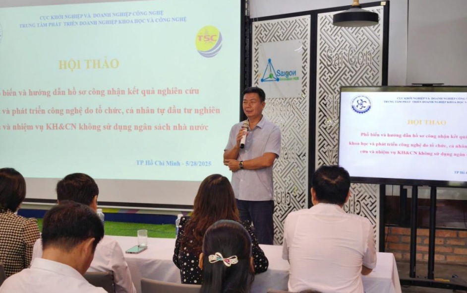 Ngoài ra, TP.HCM cũng đang tăng cường triển khai thủ tục công nhận kết quả nghiên cứu KH&CN độc lập, tạo cơ sở cho việc thương mại hóa và hợp tác phát triển trong khu vực tư nhân. Ngày 28/5/2025, Sở Khoa học và Công nghệ TP.HCM đã phối hợp Cục Khởi nghiệp và Doanh nghiệp công nghệ tổ chức hội thảo “Phổ biến và hướng dẫn hồ sơ công nhận kết quả nghiên cứu khoa học và phát triển công nghệ do tổ chức, cá nhân tự đầu tư nghiên cứu và nhiệm vụ khoa học và công nghệ không sử dụng ngân sách nhà nước” nhằm hướng dẫn thực hiện hồ sơ công nhận kết quả nghiên cứu khoa học và phát triển công nghệ do tổ chức, cá nhân tự đầu tư nghiên cứu và nhiệm vụ KH&CN không sử dụng ngân sách nhà nước. Với sự công nhận chính thức của Nhà nước - vốn là cơ sở để hưởng các ưu đãi đối với các doanh nghiệp công nghệ, việc này còn giúp cho doanh nghiệp thuận lợi hơn trong quá trình thương mại hóa kết quả nghiên cứu, ví dụ như hợp tác với doanh nghiệp khác hoặc định giá để góp vốn như nguồn tài sản trí tuệ,...