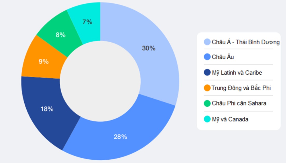 Khu vực châu Á - Thái Bình Dương (APAC) chiếm tỷ trọng phản hồi lớn nhất với 30%, đây cũng là nơi có nhiều công ty fintech phát triển nhanh nhất toàn cầu. Tiếp theo là châu Âu với 28%, khu vực Mỹ Latinh và Caribe (LAC) chiếm 18%, Trung Đông và Bắc Phi (MENA) chiếm 9%. Ngoài ra, các công ty từ châu Phi cận Sahara (SSA) và Bắc Mỹ (Hoa Kỳ và Canada) cũng chiếm tỷ lệ lần lượt là 8% và 7%.