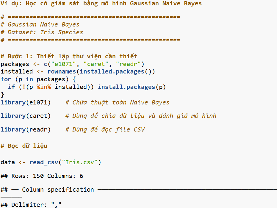 Ví dụ học có giám sát bằng mô hình Gaussian Naive Bayes trong R