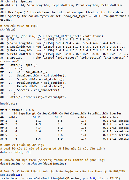 Bước 3: Chia dữ liệu thành tập huấn luyện và kiểm tra;