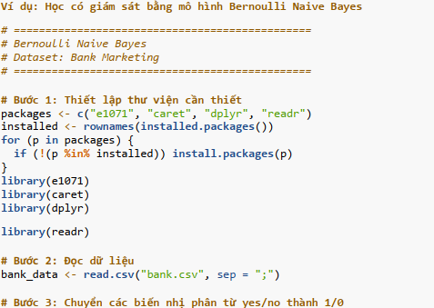 Ví dụ học có giám sát bằng mô hình Bernoulli Naive Bayes trong R