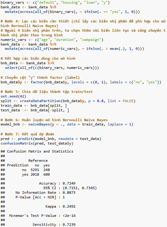 Bước 4: Huấn luyện mô hình Bernoulli Naive Bayes;