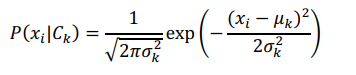 lần lượt là trung bình và phương sai của thuộc tính xi trong lớp Ck.