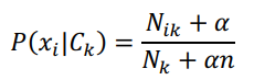 Mô hình Multinomial Naive Bayes được sử dụng cho các thuộc tính rời rạc với giả định xác suất có điều kiện sau đây: