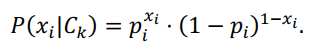 Mô hình Bernoulli Naive Bayes được sử dụng cho dữ liệu nhị phân và tuân theo xác suất có điều kiện sau đây: