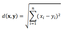 Khoảng cách Euclidean giữa hai điểm x và y trong không gian n chiều là: