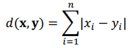 Khoảng cách Manhattan giữa hai điểm x và y trong không gian n chiều là:
