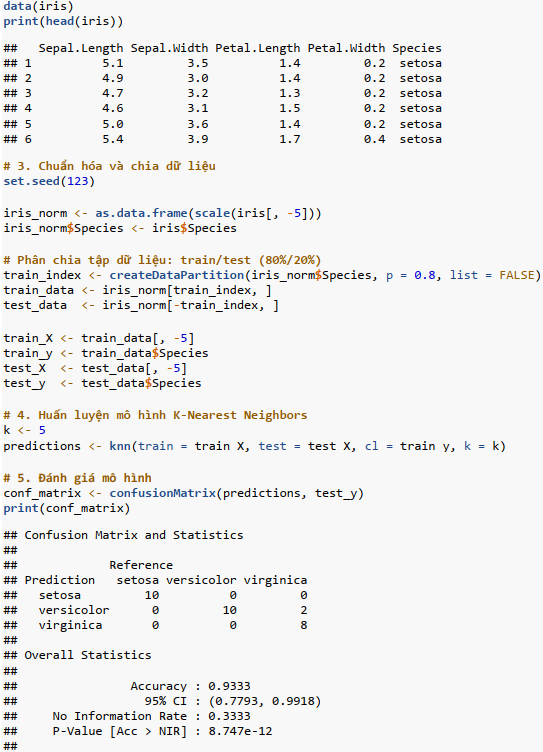 Ví dụ học có giám sát bằng mô hình K-Nearest Neighbors trong R