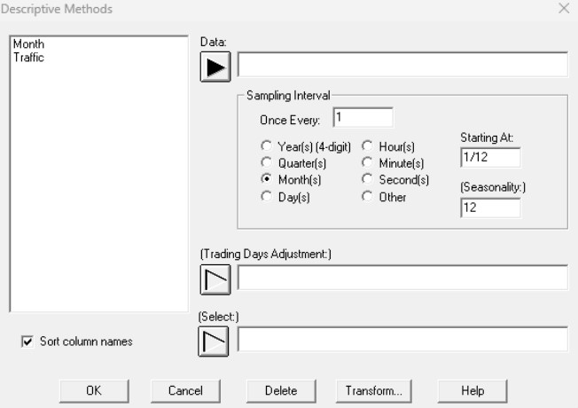 Vẽ biểu đồ dữ liệu chuỗi thời gian, chọn: Describe – Time Series – Descriptive Methods