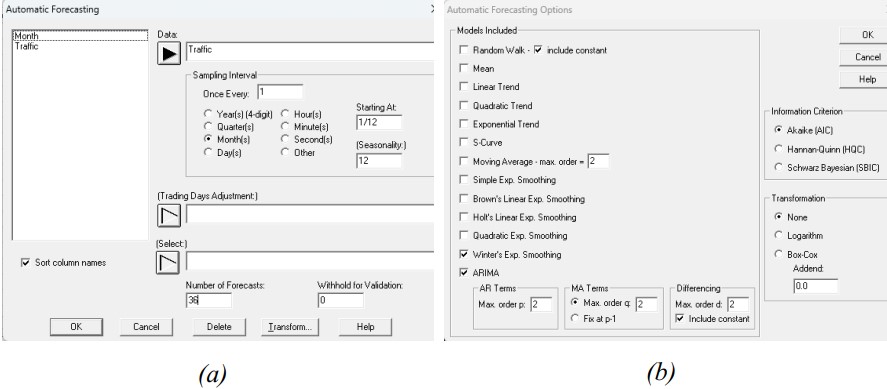 Chọn Forecast – Automatic Model Selection và tiếp tục chọn phân tích để chỉ định các mô hình cần xem xét.