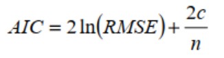 Trong đó, RMSE là sai số bình phương trung bình gốc trong khoảng thời gian ước tính, c là số lượng tham số ước tính trong mô hình được trang bị và n là cỡ mẫu.