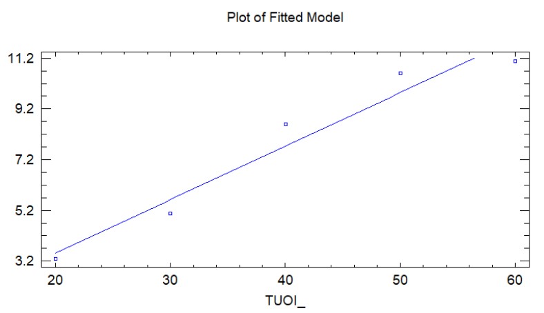 Để khớp một đường thẳng với dữ liệu này bằng phương pháp bình phương tối thiểu thông thường, Statgraphics Centurion cung cấp quy trình hồi quy đơn giản.