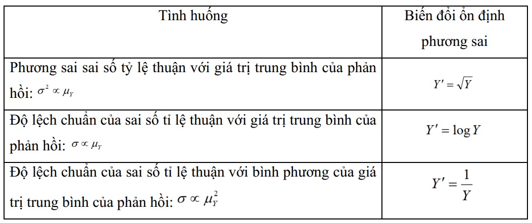 Khi phương sai của biến phản ứng tăng khi giá trị trung bình tăng, có thể ổn định phương sai bằng cách áp dụng phép biến đổi cho Y. Một số tình huống phổ biến: