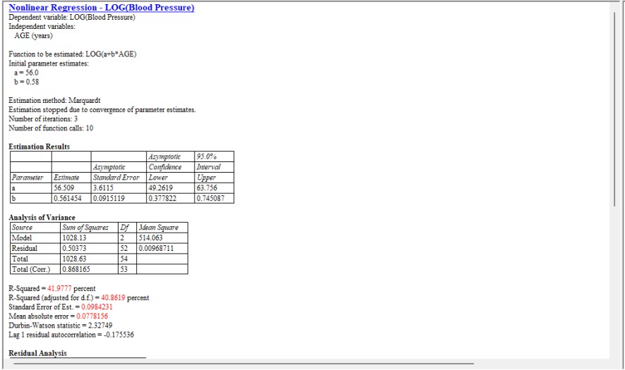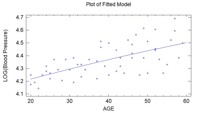 Thống kê R bình phương, đo lường tỷ lệ biến thiên của huyết áp đã được mô hình giải thích là khoảng 40,8%. Khi khớp một đường thẳng với dữ liệu này, việc giảm trọng số cho các phần dư có độ lớn xác định đối với những giá trị của X có phương sai sai số lớn sẽ mang lại kết quả tốt hơn.