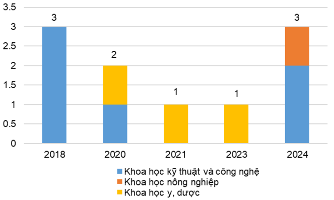 Biểu đồ 3: Nhiệm vụ đã hoàn thành và đang triển khai, theo lĩnh vực nghiên cứu 2015-2024