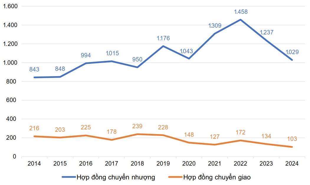Số hợp đồng đã đăng ký chuyển nhượng và chuyển giao, giai đoạn 2014-2024