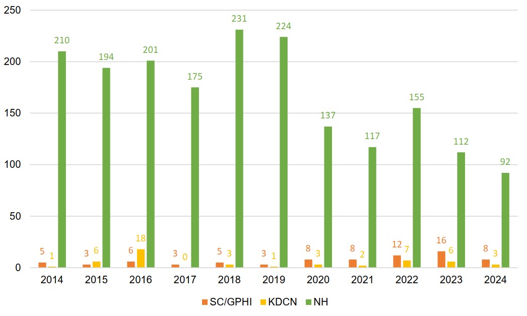 Số hợp đồng đã đăng ký chuyển nhượng chuyển giao theo nhóm chủ thể, giai đoạn 2014-2024