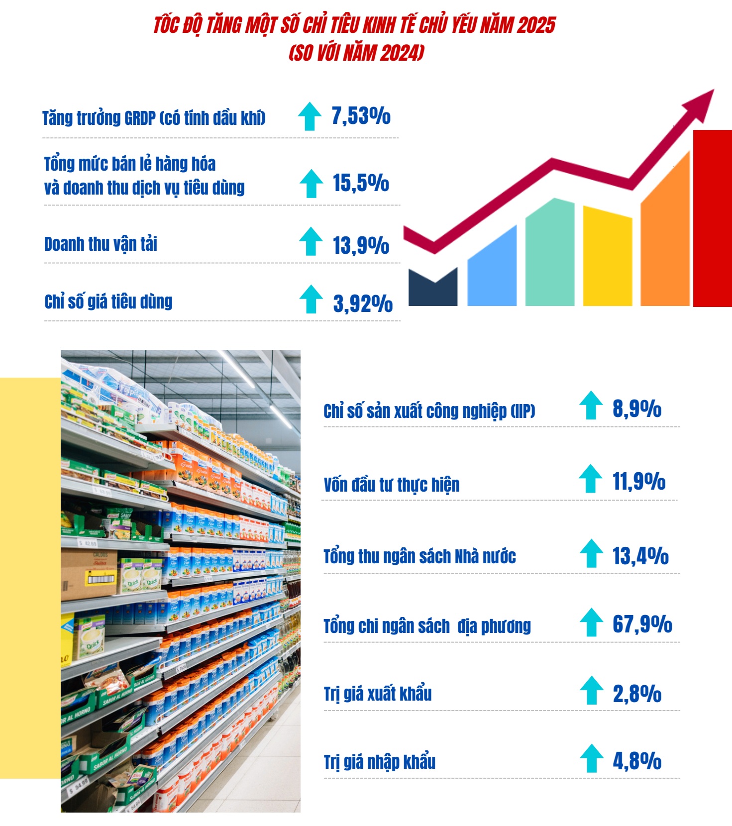 Hình 1. Tốc độ tăng một số chỉ tiêu kinh tế chủ yếu năm 2025 (so với năm 2024)
