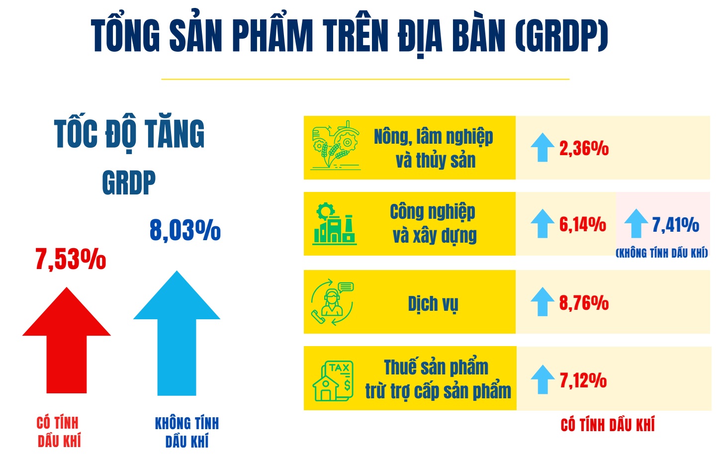 - Khu vực dịch vụ tăng 8,76%, đóng góp 59,4% vào mức tăng GRDP chung;